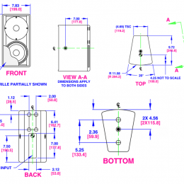 考慮美觀因素,有泡沫襯墊的網罩遮住驅動單元。音箱頂部、底部和側面都設有安裝點,便于利用吊環螺栓或者配套支架把音箱安裝在任何結構中。另設的安裝點能配合OmniMount® 30.0 系列或類似支架,也可配合第三方的外部支架適配接頭,如K&M195/8或Ultimate Support? BMB-200K進行立桿安裝。標準顏色有黑色和白色。可以定制其他顏色。