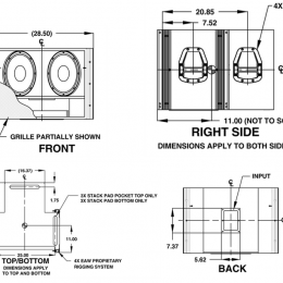 音箱的兩個12英寸低音單元以“蛤殼”形式排列,使驅動結合得更加緊密,從而提高了輸出并使低頻“沖擊力”得到最大化。大尺寸開口設計可在音箱的工作頻率上輻射相當大的能量,從而能為KF730模塊在其他頻率上的輸出提供補充。