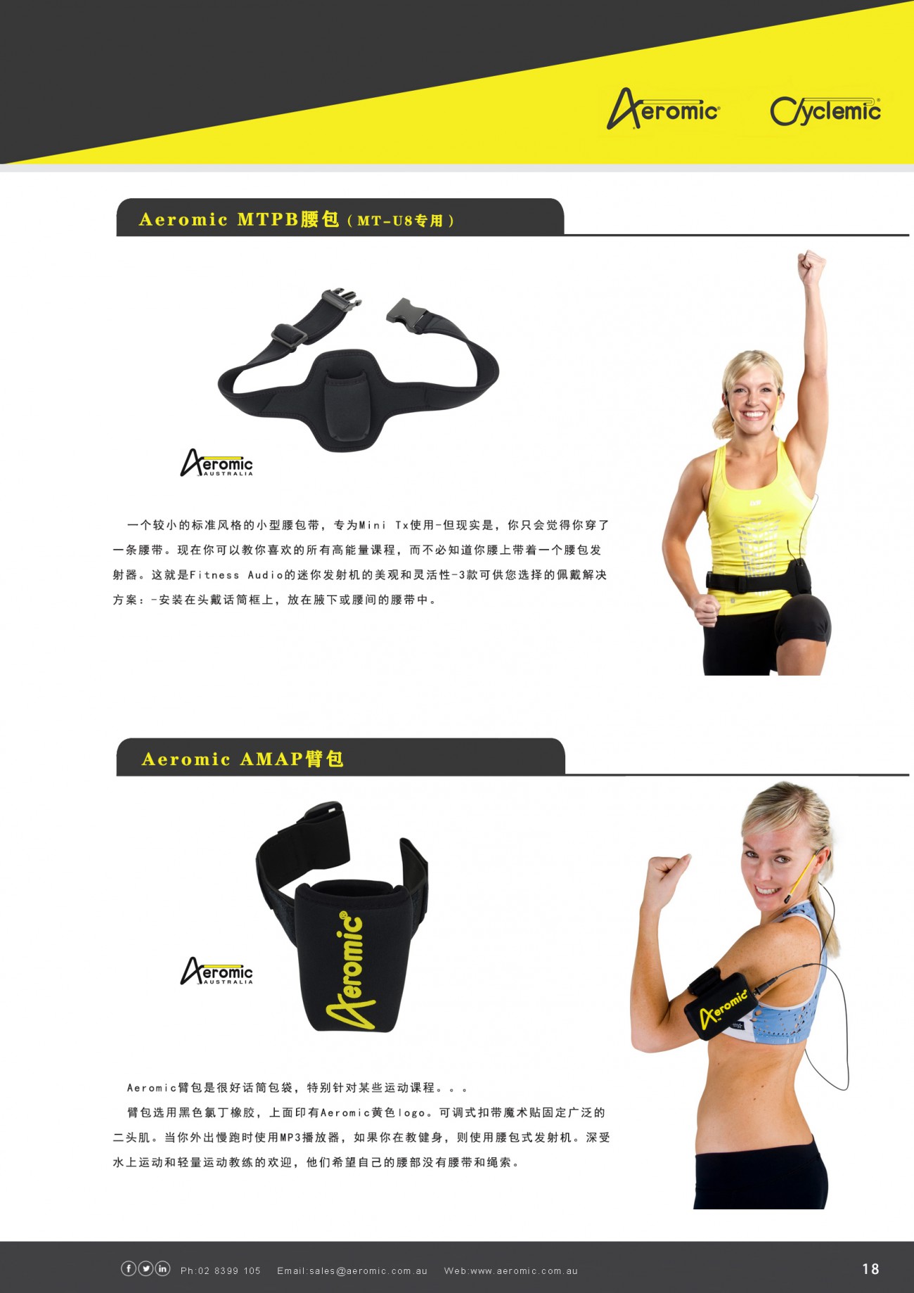 Aeromic Microphones Australia(Aeromic)提供一系列話筒和音響設備,用于健身俱樂部音響系統或獨立健身教練的便攜式音響系統。AMA公司于1994年由約翰·彭哈洛和彼得·佩斯利創立。AMA是在澳大利亞生產的全球領先的Aeromic和Cyclemic話筒的供應商。