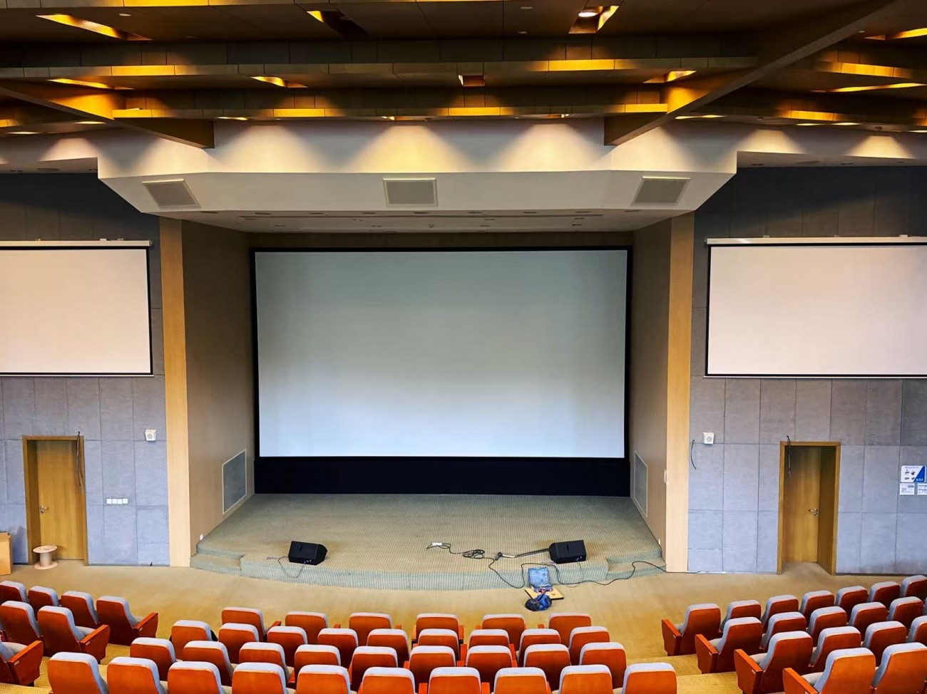 如此重要的場所,自然需要重金打造擴聲系統。經過業主多方考察,最終選用P.AUDIO音響擴聲提供,搭配Audio Centron功放驅動,SHURE話筒提供清晰的拾音效果。為了保證劇場現場的美觀度,現場多數音響采用隱藏安裝。